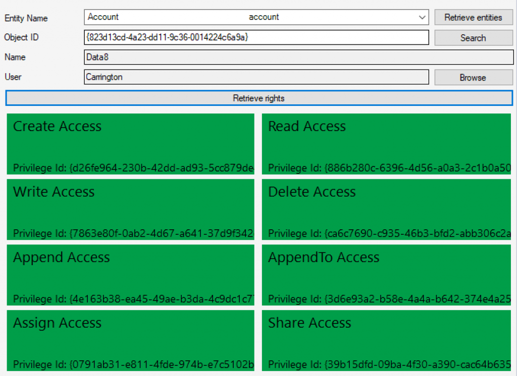 If you’re missing any of these you’ll get the rather ambiguous message “Merge is not allowed: caller does not have the privilege or access”. You can use a tool use as the XrmToolBox Access Checker plugin to find out exactly which privilege you are missing. If you’re on-prem then you can take a look at the server trace logs to get more details.