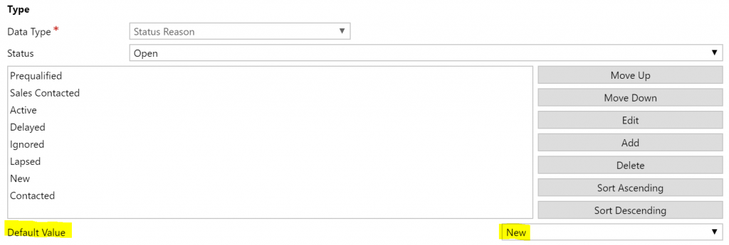The default status code for a state code can be selected within the attribute customization screen, currently this can only be done through the classic UI: