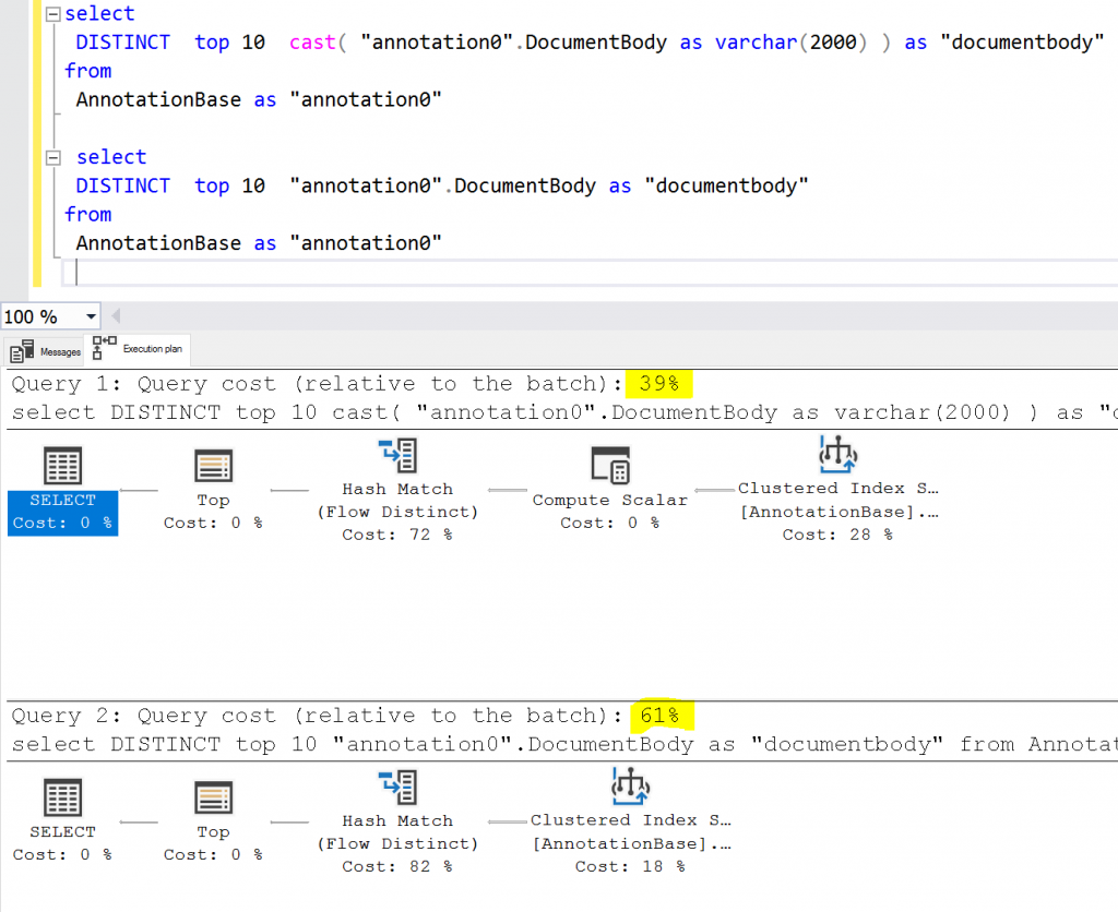 select DISTINCT top 10 cast( "annotation0".DocumentBody as varchar(2000) ) as "documentbody" from AnnotationBase as "annotation0"
