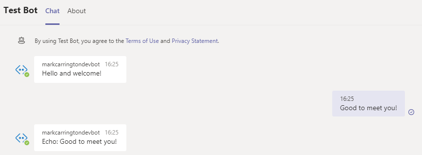 That’s enough for today, next time I’ll take a look at how I can get my bot to push out messages to Teams rather than just respond when the user sends a message.