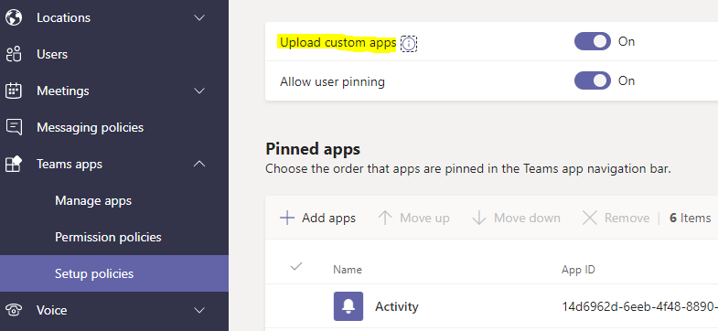 Now the frustrating part – it still doesn’t work! Teams policies seem to take some time to apply, so come back to it later, go to App Studio and click that Install button again. If everything’s going smoothly your bot should now appear as a new app in the left hand menu, and you can start chatting to it in Teams!