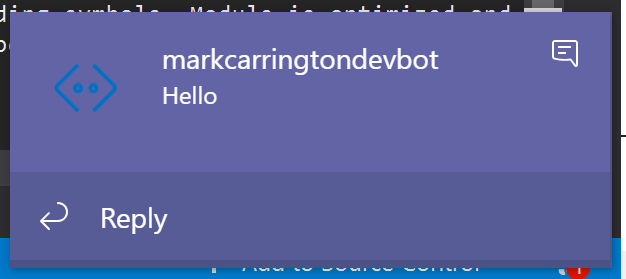The key thing I want to do with my bot is to push messages out to users when something happens in D365, not just in response to the user sending a message to the bot. This was the part I was unsure of, but a bit of searching gives me the key phrase Proactive Messages. Apparently this is what I need to implement.