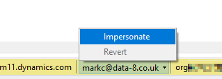 You can now run a query as another user if you have sufficient permissions. Either click on your username in the status bar at the bottom and select the Impersonate option: