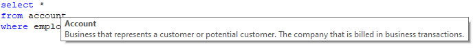 I’ve also added tooltips to show the description of tables, columns and functions. The tooltips will appear both when an item is selected in the autocomplete list and when you hover your mouse over a name in your query.