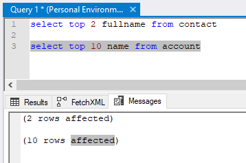 Rather than having separate Results, FetchXML and Messages tabs for each query, wasting space and time, a single set of tabs is now used.
