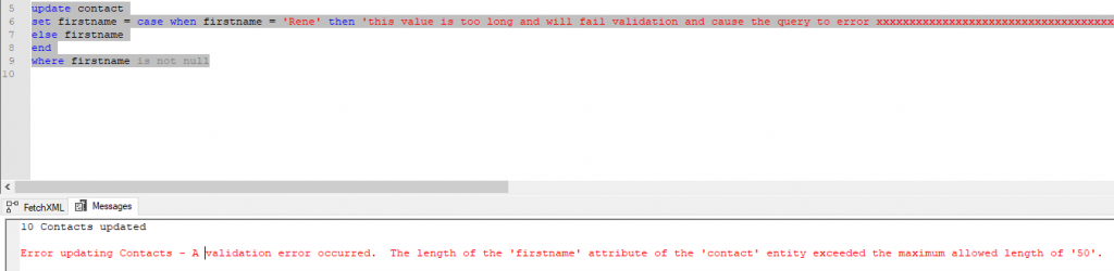 If a bulk insert/update/delete query fails part way through, the Messages tab will now show the number of records that have been affected as well as the error at the point the query failed.