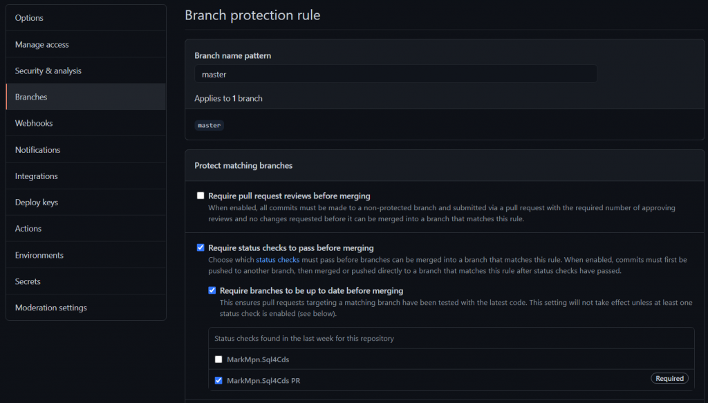 I want all changes to go through a pull request, and this build should run to validate the changes. If the build or any of the tests fail, I shouldn’t be able to merge the PR.