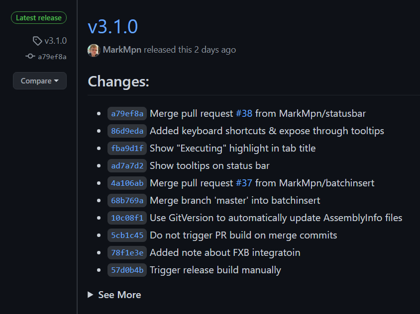 I could go another step and automatically push out a new release for every change, but I don’t want to swamp users with notifications of new releases every day. So after accumulating a number of changes I now need to force a build manually that will form my new release.