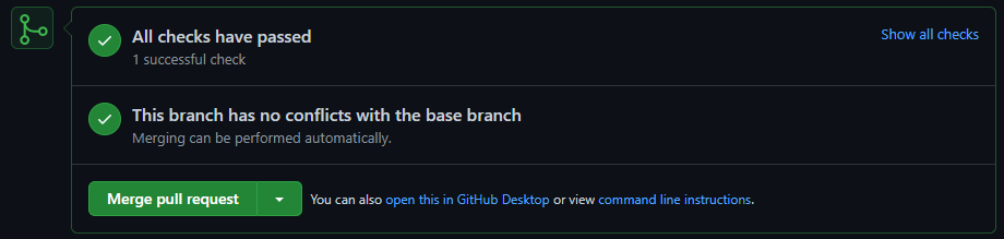 Until the build passes the merge button is disabled. When it does pass I get a little tick icon next to the PR and I know it’s safe to merge.