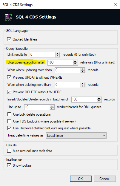 This is mainly a bug fix release based on reports from users (thank you!) and telemetry. If you’ve hit problems running queries with SQL 4 CDS v5, please update to v5.1 and try again. If your query still doesn’t work, please let me know! You can put details of any errors you encounter in the comments at the end of this post, create a GitHub issue or send me a message on Twitter, LinkedIn or email sql4cds [at] markcarrington.dev