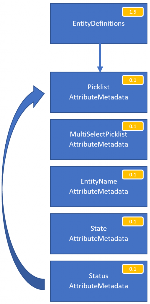 As metadata doesn’t change often, it make sense to cache it for future requests. As the name implies, RetrieveMetadataChanges will give you the changes to the metadata since the last time you asked for it. Each request gives you not only the metadata you’ve asked for but also the current version number. If you supply that version number to the next request it will give you only the changed metadata since that version.